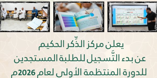 يعلن مركز الذِّكر الحكيم عن فتح باب التسجيل للدورة المنتظمة الأولى لعام 2026م للطلبة الجدد، ويستمر التَّسجيل حتى 8 يناير…