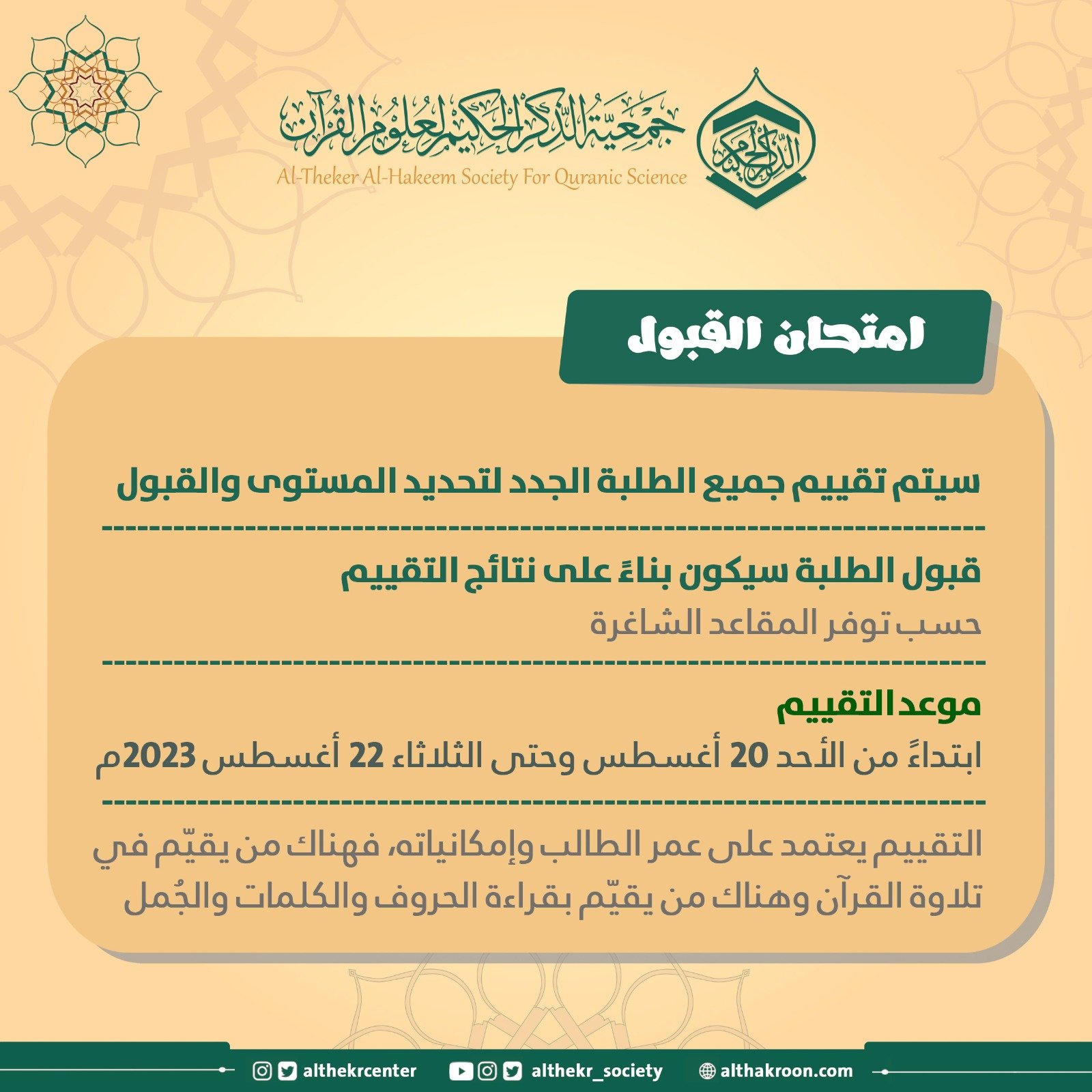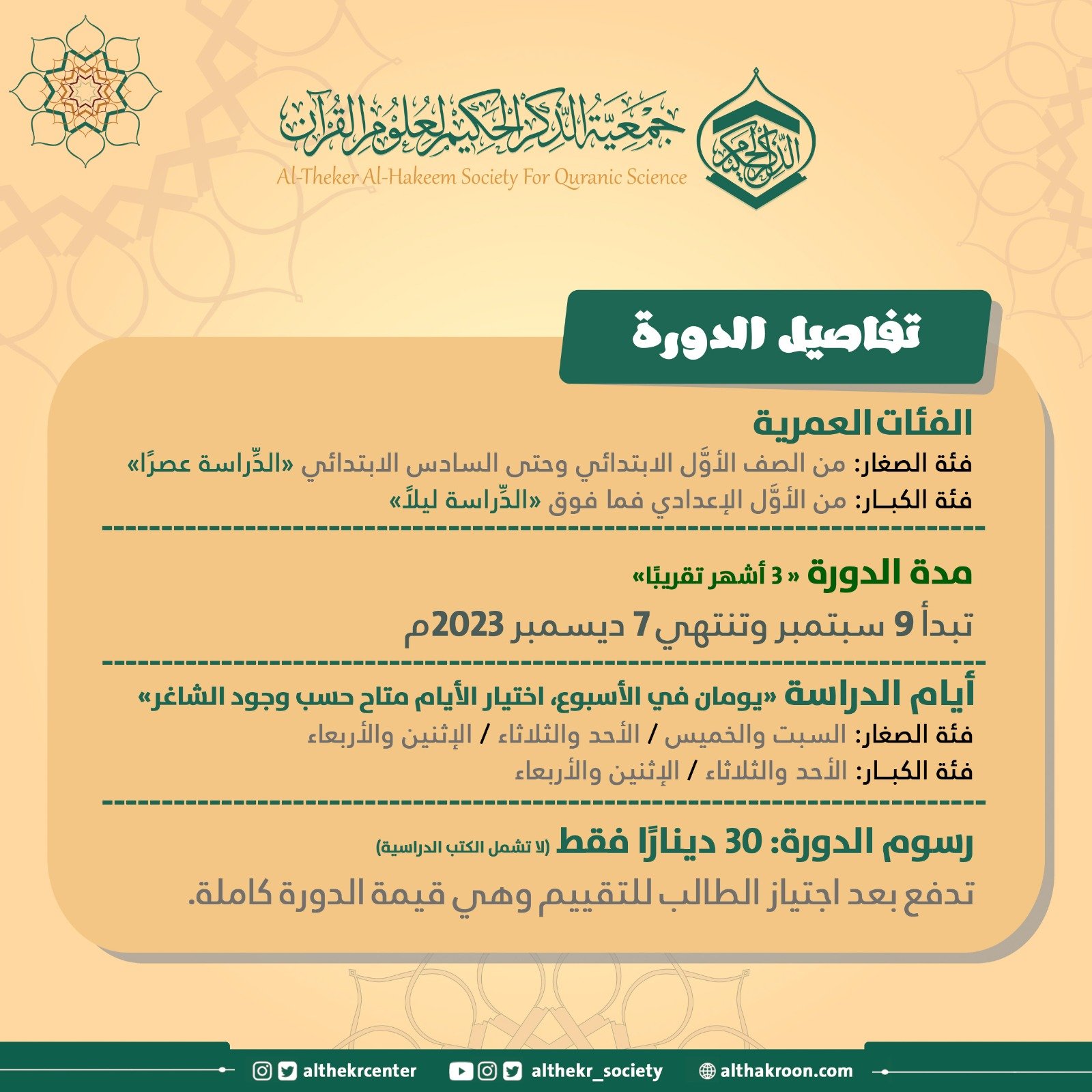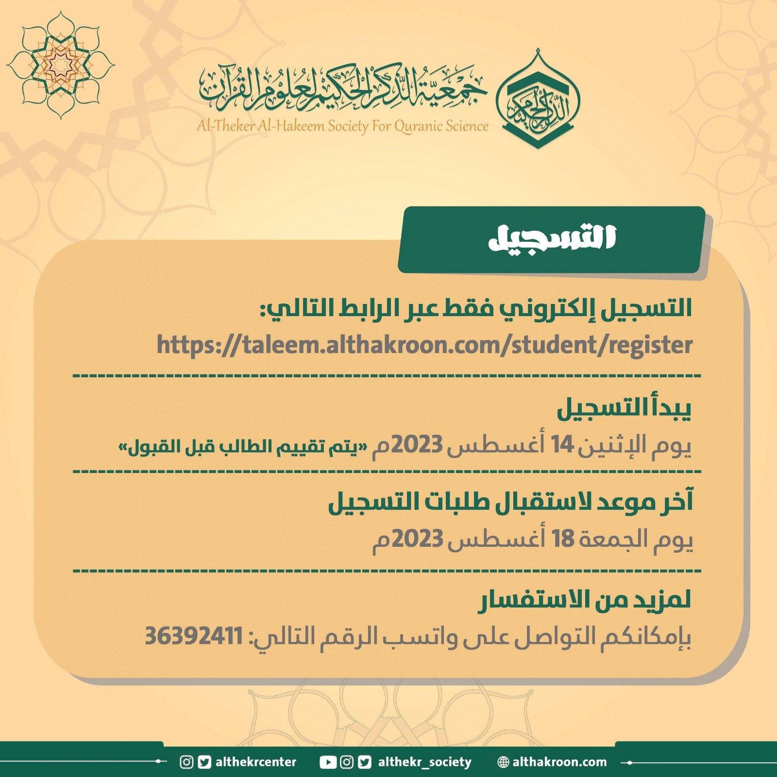 إعلان التَّسجيل للمُستجدّين بالذِّكر الحكيم 2023م