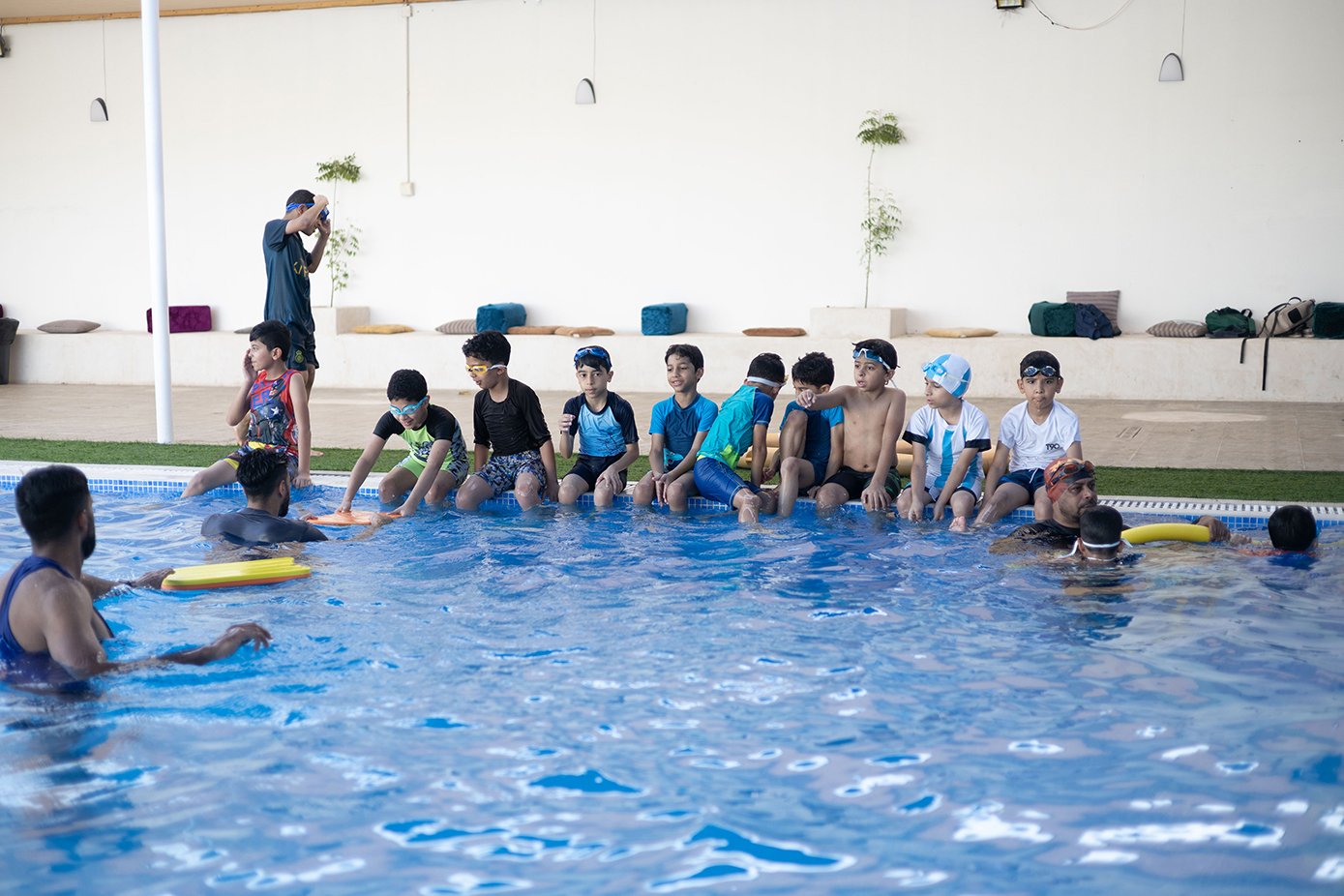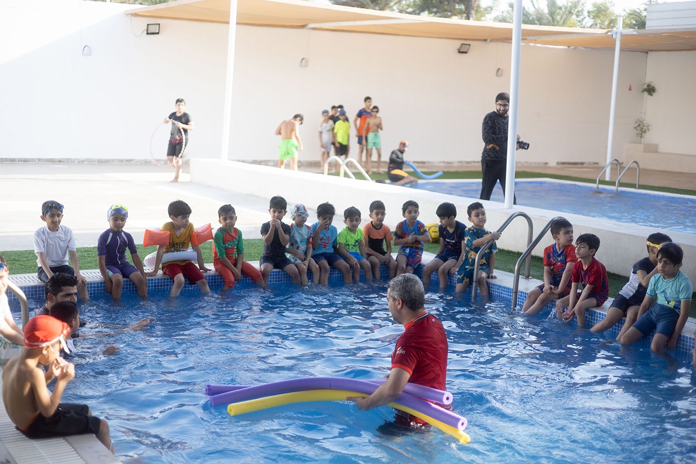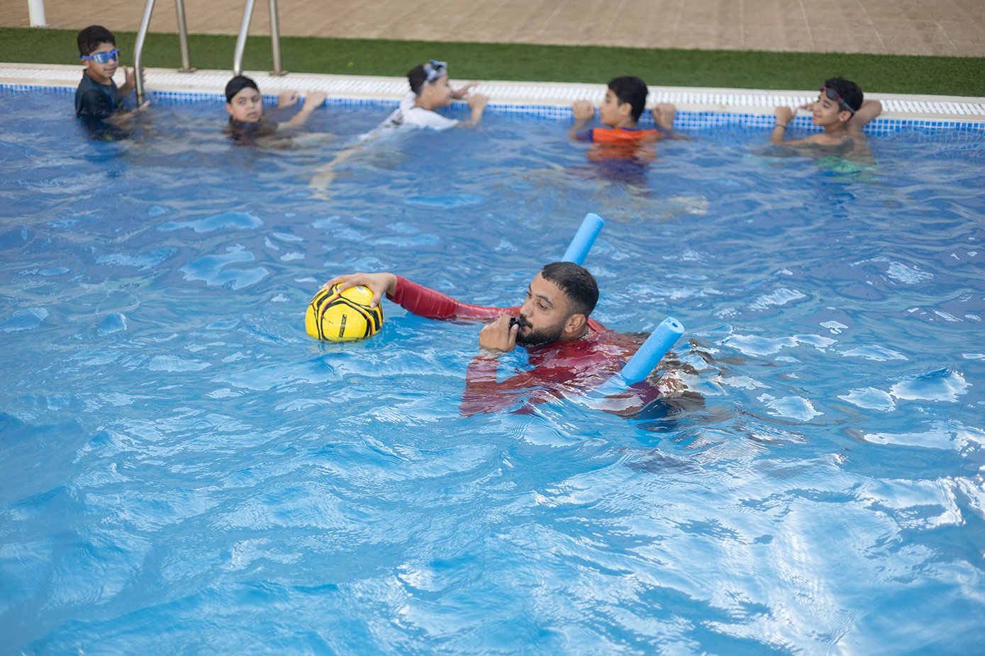 هذا وقد بدأ العديد من الأطفال بإتقان السِّباحة بالطريقة الصَّحيحة فيما تمكّن بعض الطلبة من إبعاد الخوف والاندماج مع المجموعة، وقد قسَّم المدربون الطَّلبة لمجموعات ويتم متابعة في كل الطلبة في التَّدريب بشكلٍّ تدريجي، خصوصًا الصِّغار منهم حيث يتم إدماجهم في التَّدريب ببطئ تجنبًا لأي ردَّة فعل منهم.