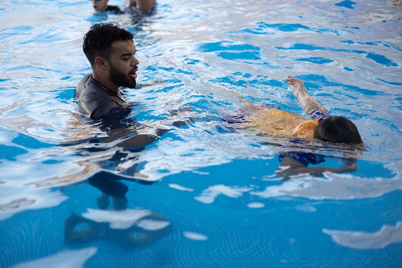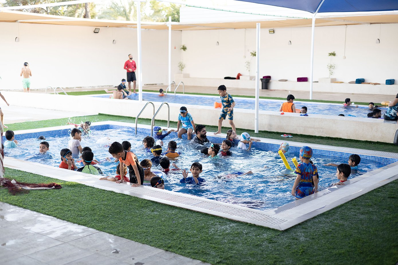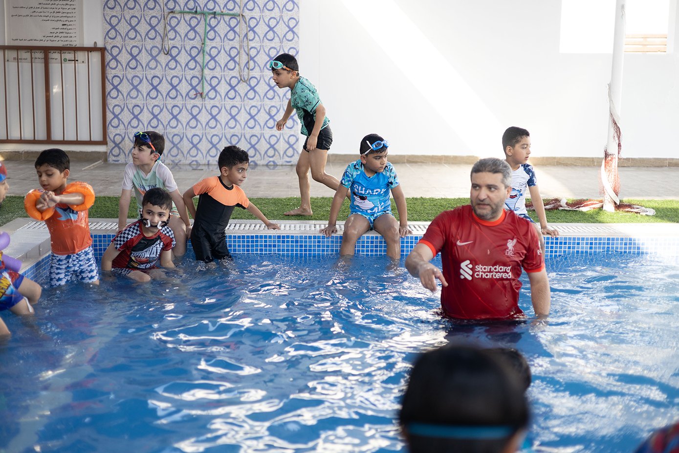 هذا وقد بدأ العديد من الأطفال بإتقان السِّباحة بالطريقة الصَّحيحة فيما تمكّن بعض الطلبة من إبعاد الخوف والاندماج مع المجموعة، وقد قسَّم المدربون الطَّلبة لمجموعات ويتم متابعة في كل الطلبة في التَّدريب بشكلٍّ تدريجي، خصوصًا الصِّغار منهم حيث يتم إدماجهم في التَّدريب ببطئ تجنبًا لأي ردَّة فعل منهم.