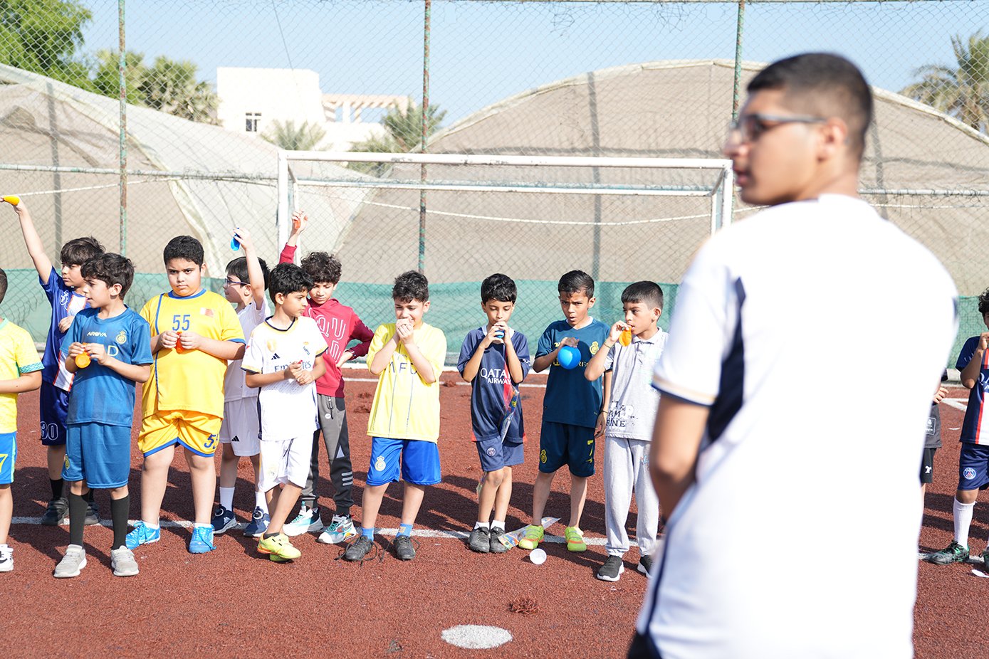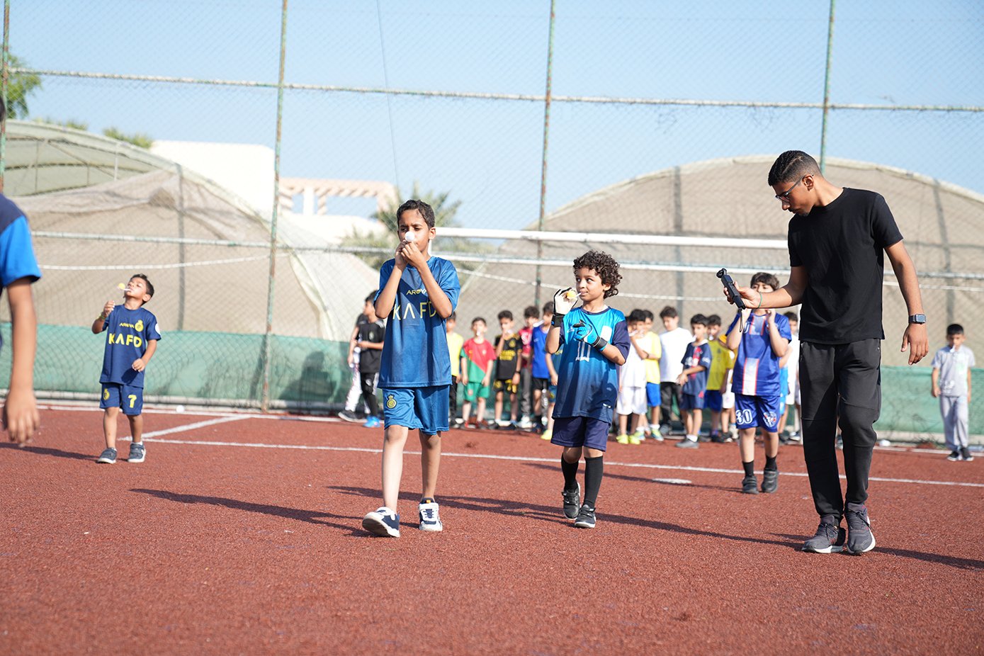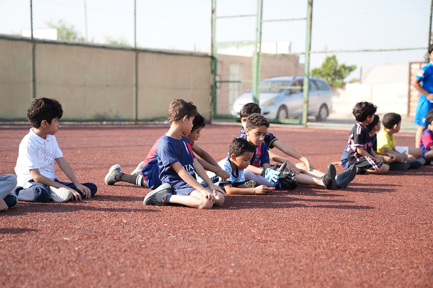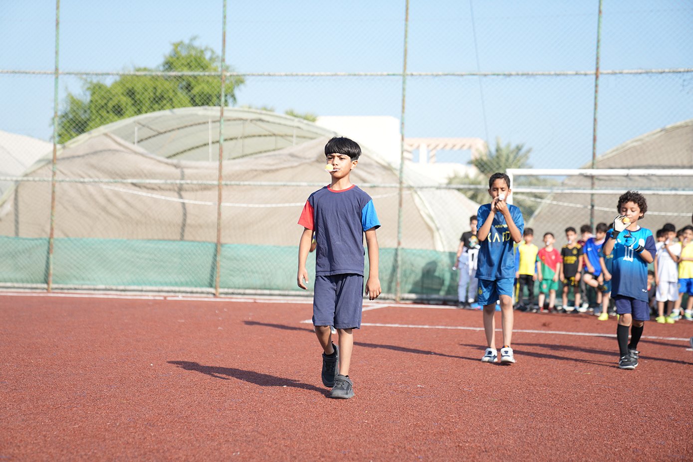 ما إن تجمّع الطَّلبة في الملعب، وزّعت اللَّجنة الطلبة إلى مجموعتين ووزعتهم على ملعبين حسب الأعمار وفي كل مجموعة ٤ فرق.