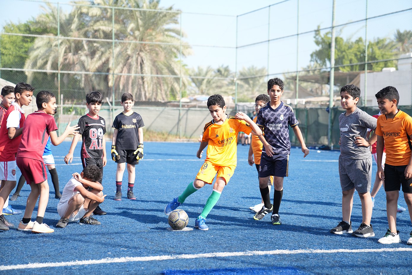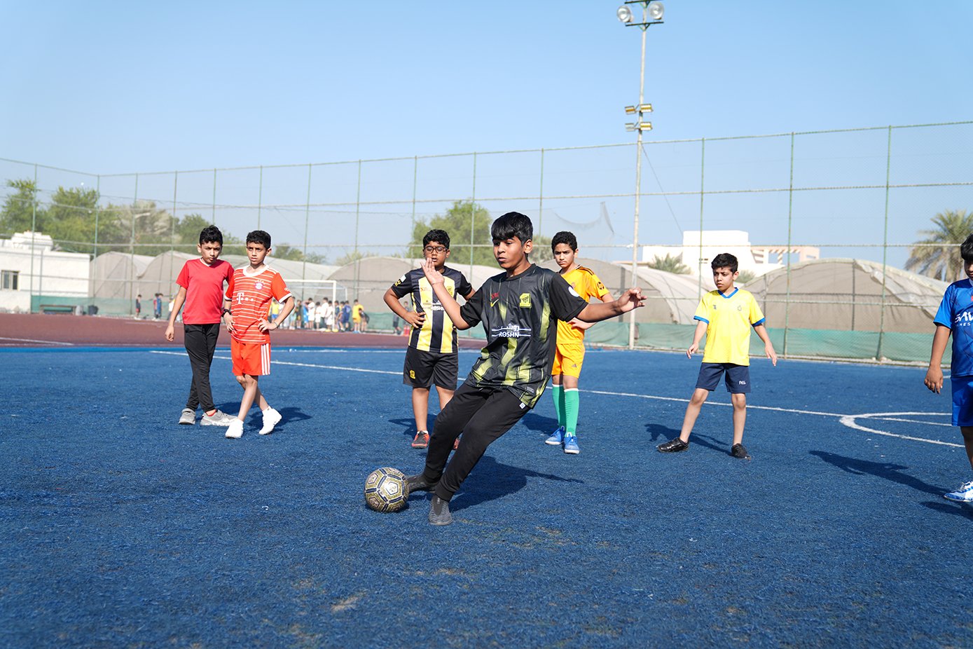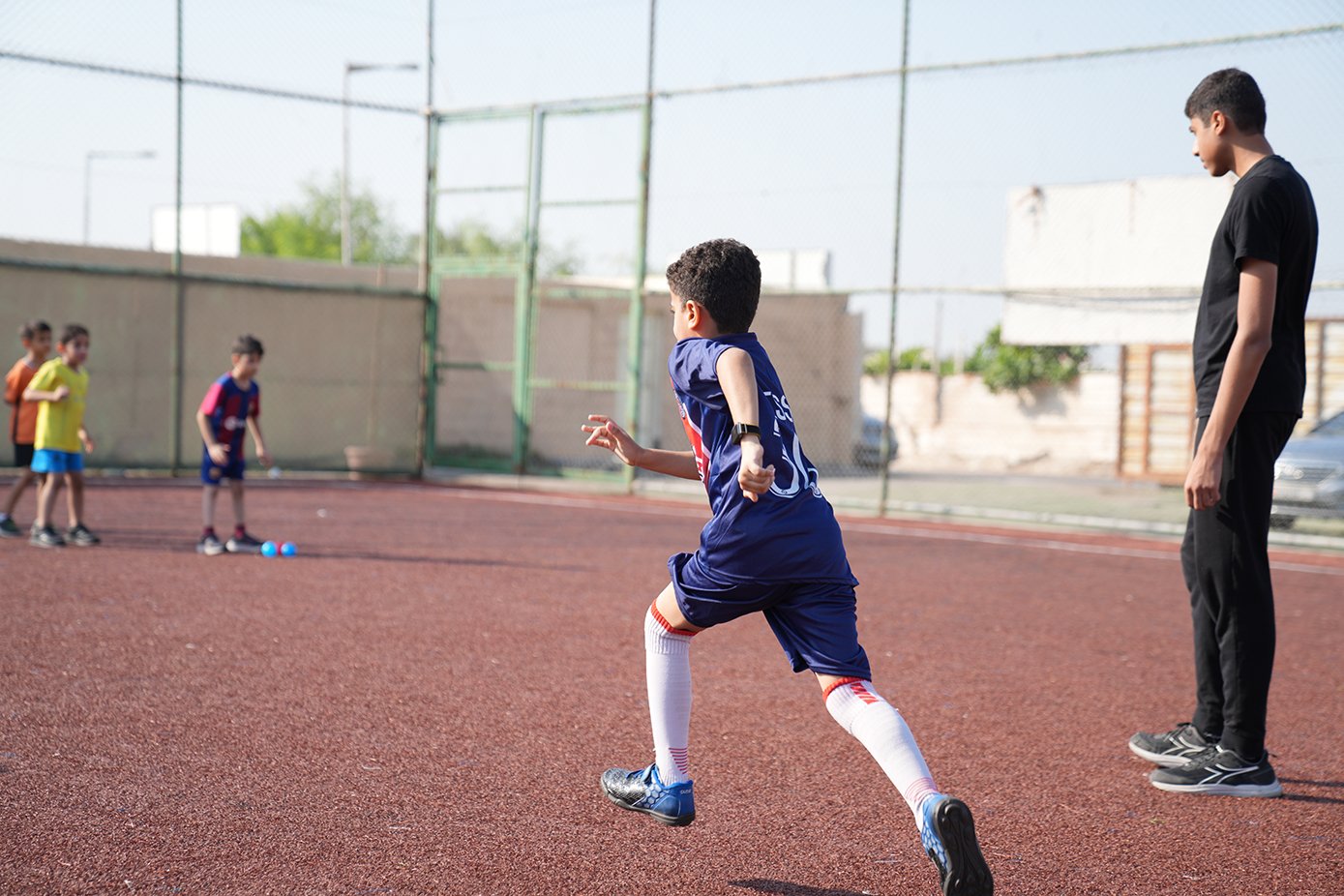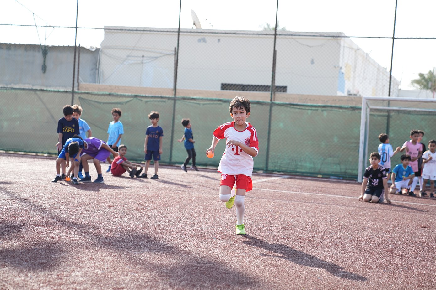 ما إن تجمّع الطَّلبة في الملعب، وزّعت اللَّجنة الطلبة إلى مجموعتين ووزعتهم على ملعبين حسب الأعمار وفي كل مجموعة ٤ فرق.
