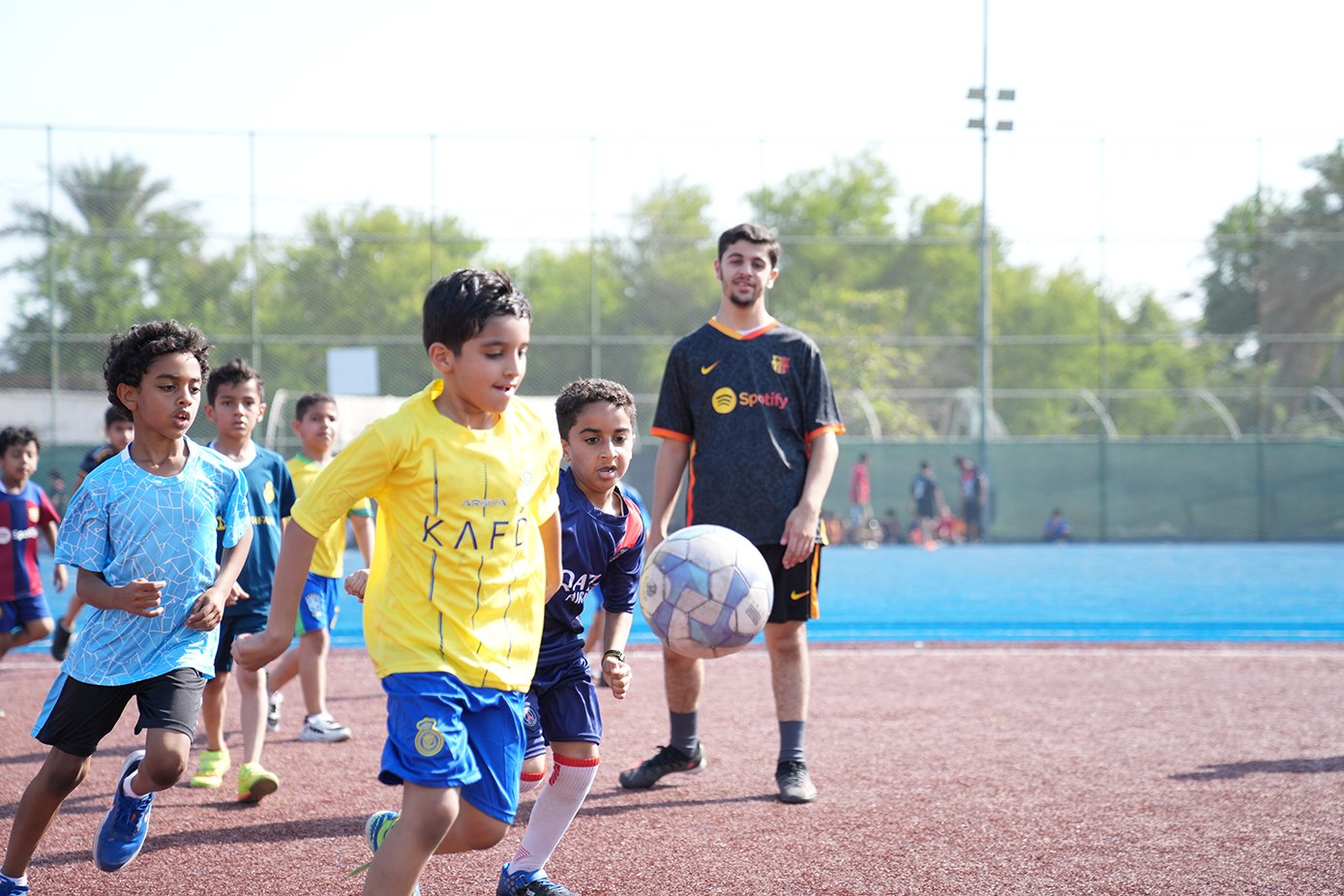 الطلبة الصِّغار بالذِّكر الحكيم يمرحون ويلعبون في ملاعب برشلونة