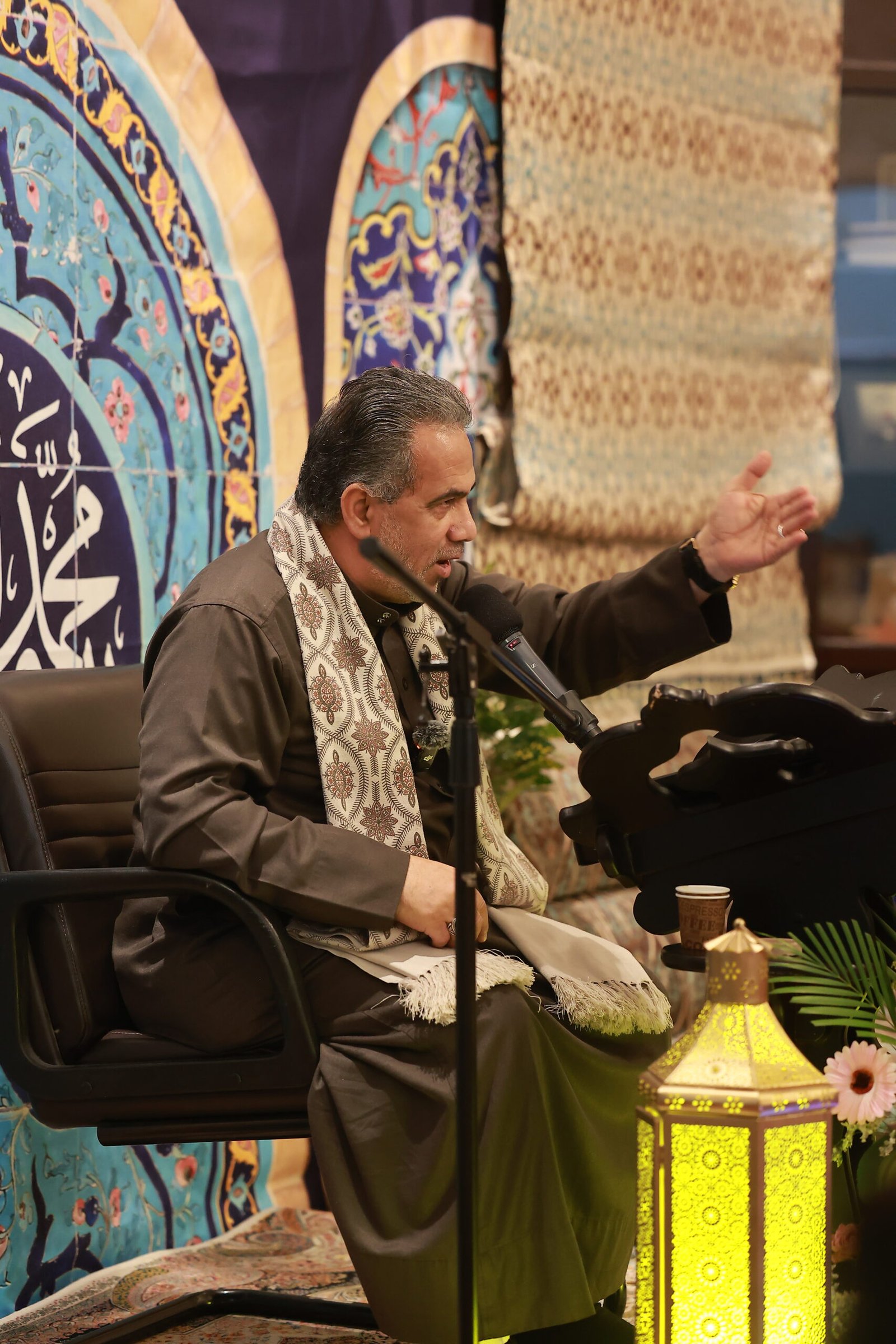 افتُتحت الأمسية بتلاوة عطرة من الذكر الحكيم بصوت القارئ علي عبدالشهيد، الذي أبدع في إيصال آيات الله بصوته الندي وأسلوبه المؤثر، مما أضفى أجواءً روحانية مميزة على الفعالية.