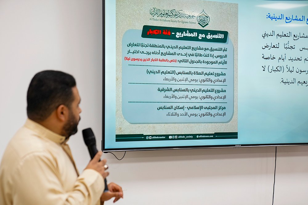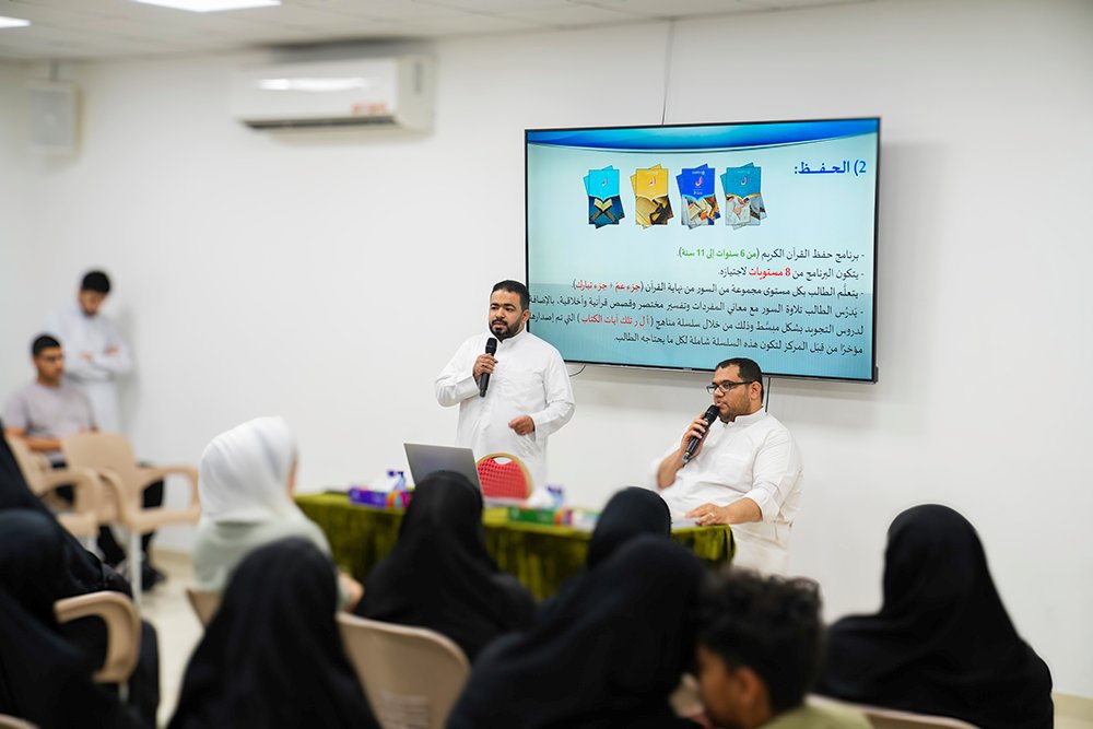 أقام مركز الذكر الحكيم لعلوم القرآن لقاءين تعريفيين بأولياء أمور الطلبة، خُصّص الأول للأمهات يوم الأربعاء الموافق ٣ سبتمبر ٢٠٢٥م، فيما عُقد اللقاء الثاني للآباء يوم الخميس ٤ سبتمبر ٢٠٢٥م، وذلك للتعريف بالبرامج التعليمية وكل ما يتصل بالمسيرة القرآنية للأولاد.
