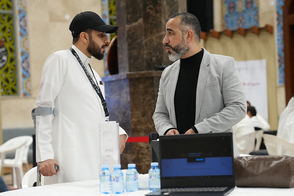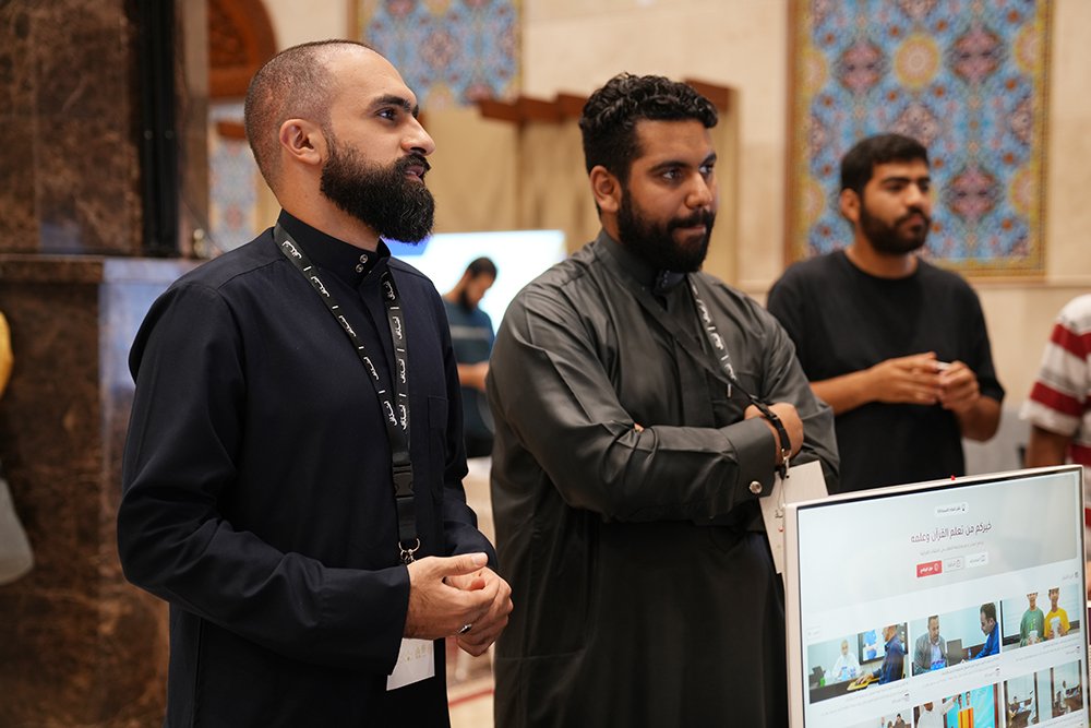 عقب انتهاء جميع العُروض، انتقل النشاط إلى الأركان التفاعلي الخاص بنا، والذي تحول إلى نقطة جذب وشهد توافدًا مهيبًا وكثافة في التفاعل من قبل الجمهور والقيادات المؤسسيَّة. لقد جسّد ركنًا تكاملاً فريدًا بين الإرث والاحترافية، حيث عرضنا ثمانية إصدارات (وهي عبارة عن سلسلة أ ل ر تلك الكتاب) قمنا بتأليفها وتُدرّس حاليًا ضمن برامجنا التعليميَّة، مما يبرهن على العمق المنهجي والتزامنا بالتعليم المعاصر. وإلى جانب المناهج الحديثة، استعرضنا كذلك الإصدارات القديمة التي تمثل إرثنا التاريخي الغني، لتوثيق مسيرتنا الطويلة في خدمة علوم القرآن. كما أكدنا على ريادتنا في التحول الرقمي بعرض وشرح الموقع الإلكتروني والمنصات التعليميَّة الرقميَّة التَّابعة لنا، كمنصة “نُتقن تلاوته”، لتوضيح استراتيجيتنا في توظيف التكنولوجيا لخدمة القرآن وتيسير وصول علومه.