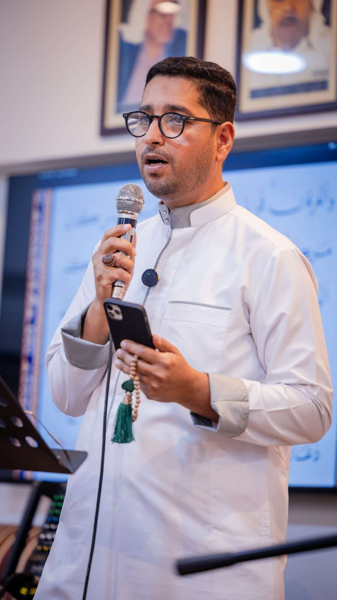 كما تخلّل البرنامج فقرة أسئلة وجوائز للجمهور قدّمها الأستاذ باسم يوسف تعزيزاً للمشاركة وإثراءً للمشهد الإيماني، فيما تولّى الأستاذ حسن عبدالشهيد عرافة المحفل وإدارة فقراته، مقدّماً فقرات الأمسية بأسلوبٍ متميّز يعكس روح المناسبة ومكانتها في نفوس المؤمنين.