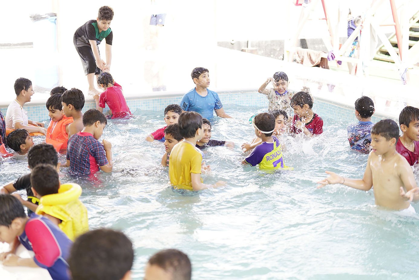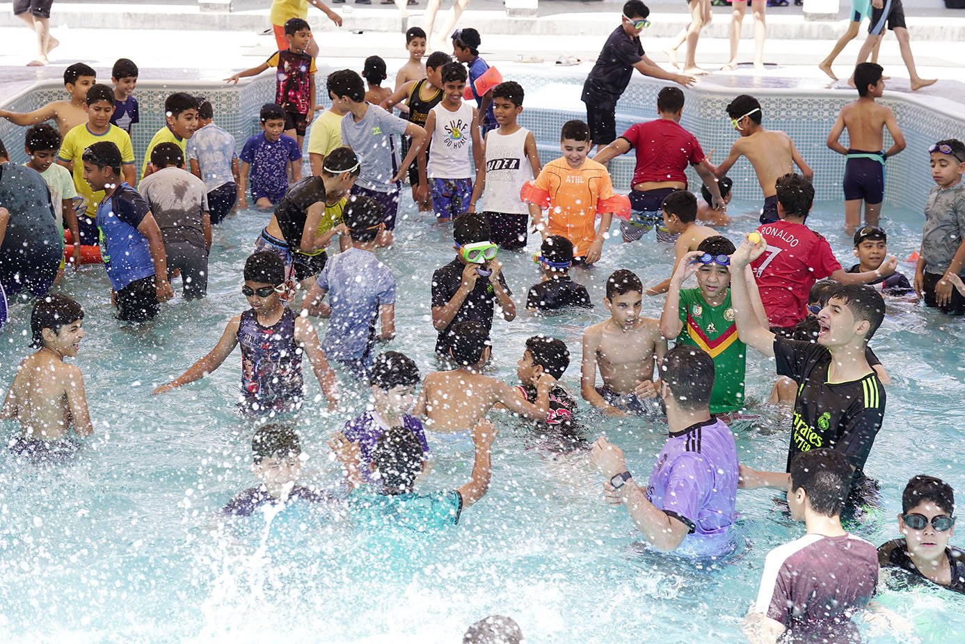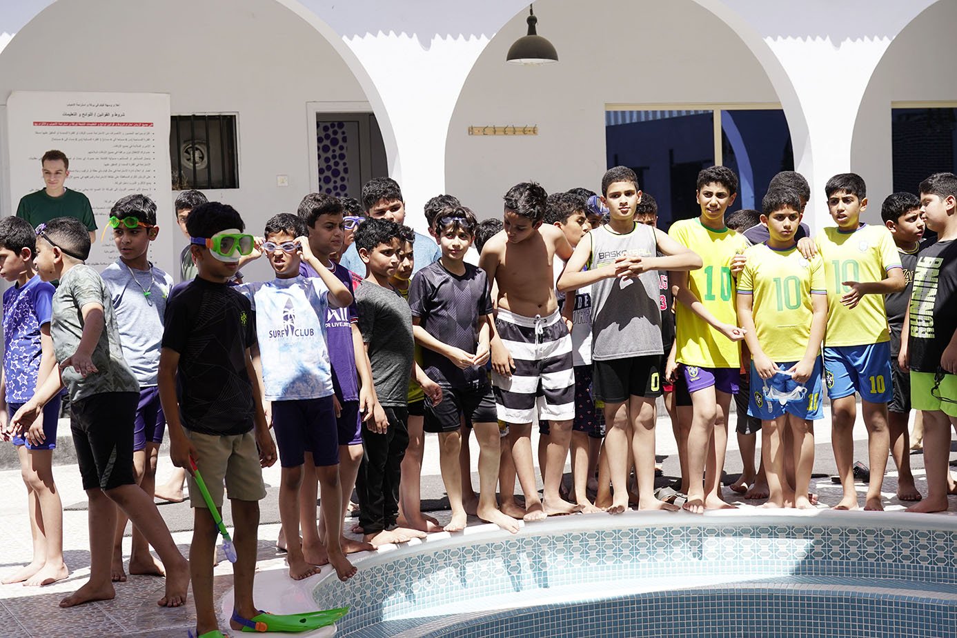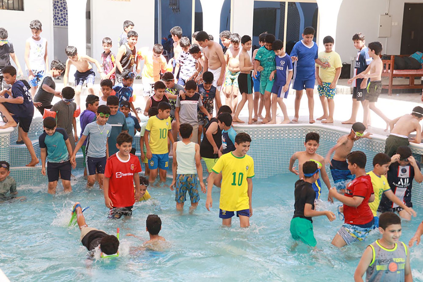 فئة الصِّغار بالذكر الحكيم يمرحون في بُركة سباحة
