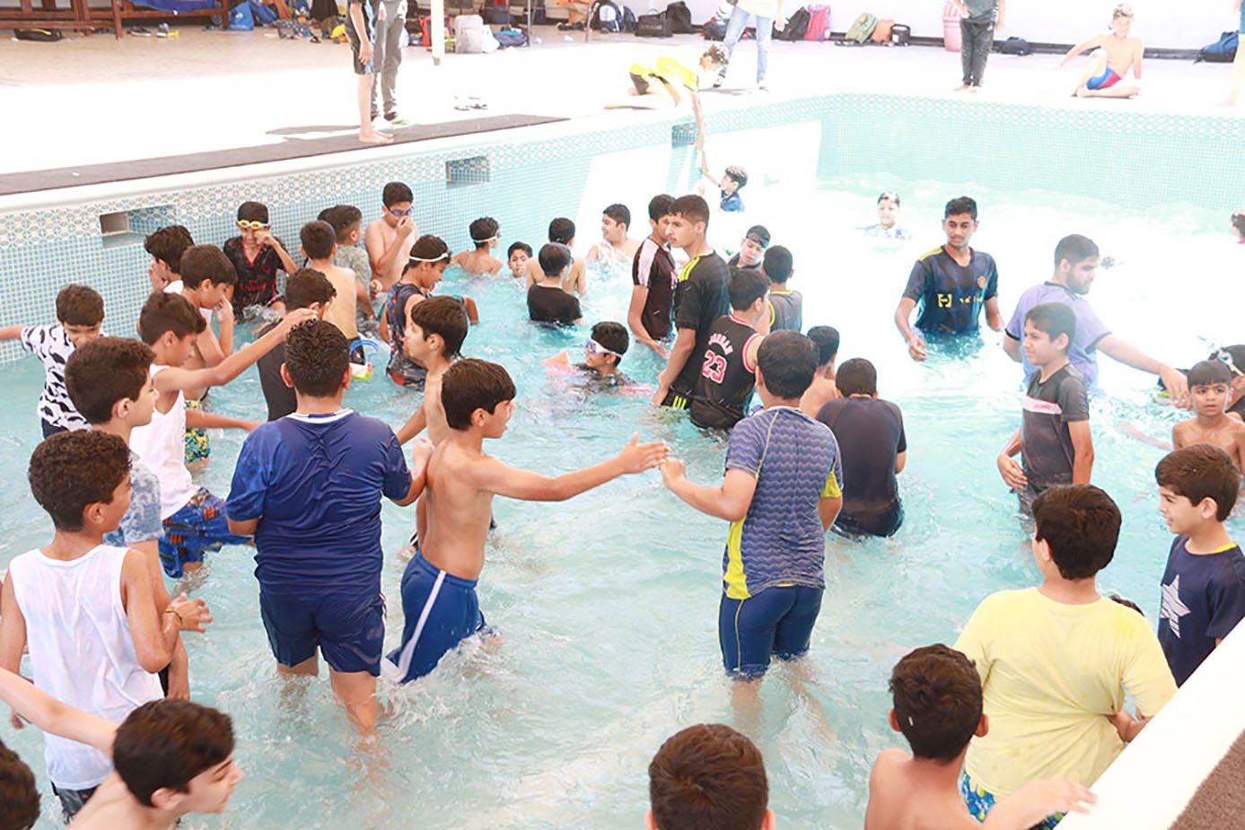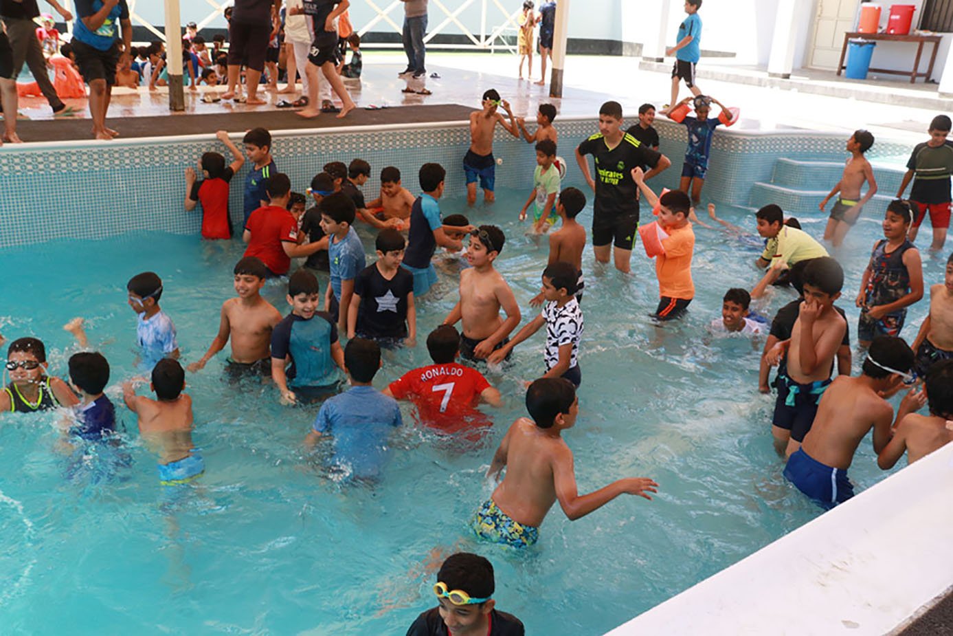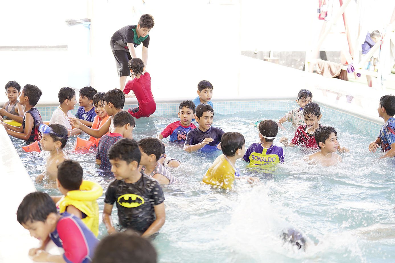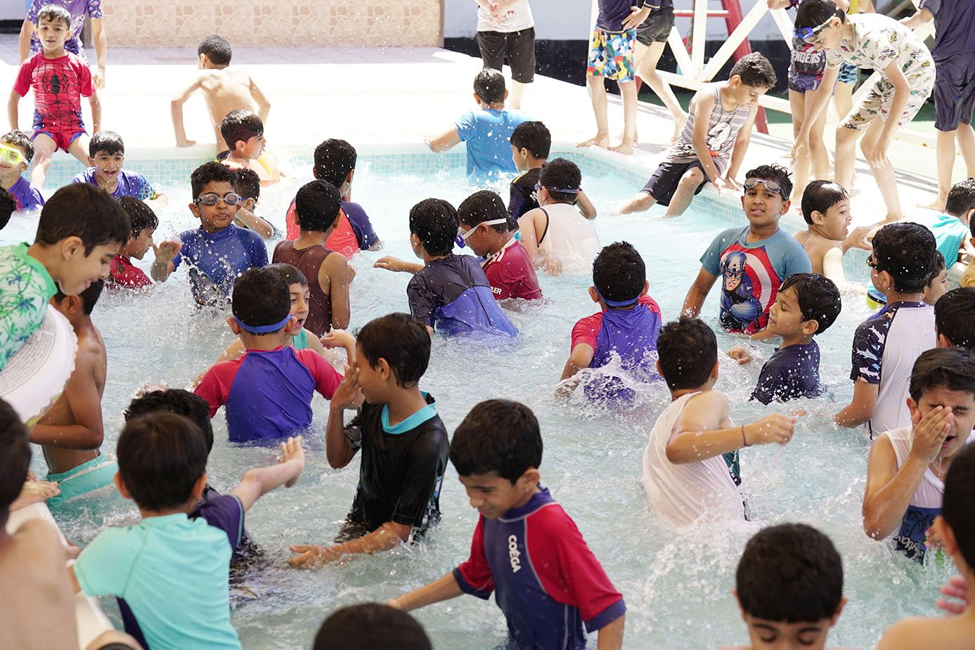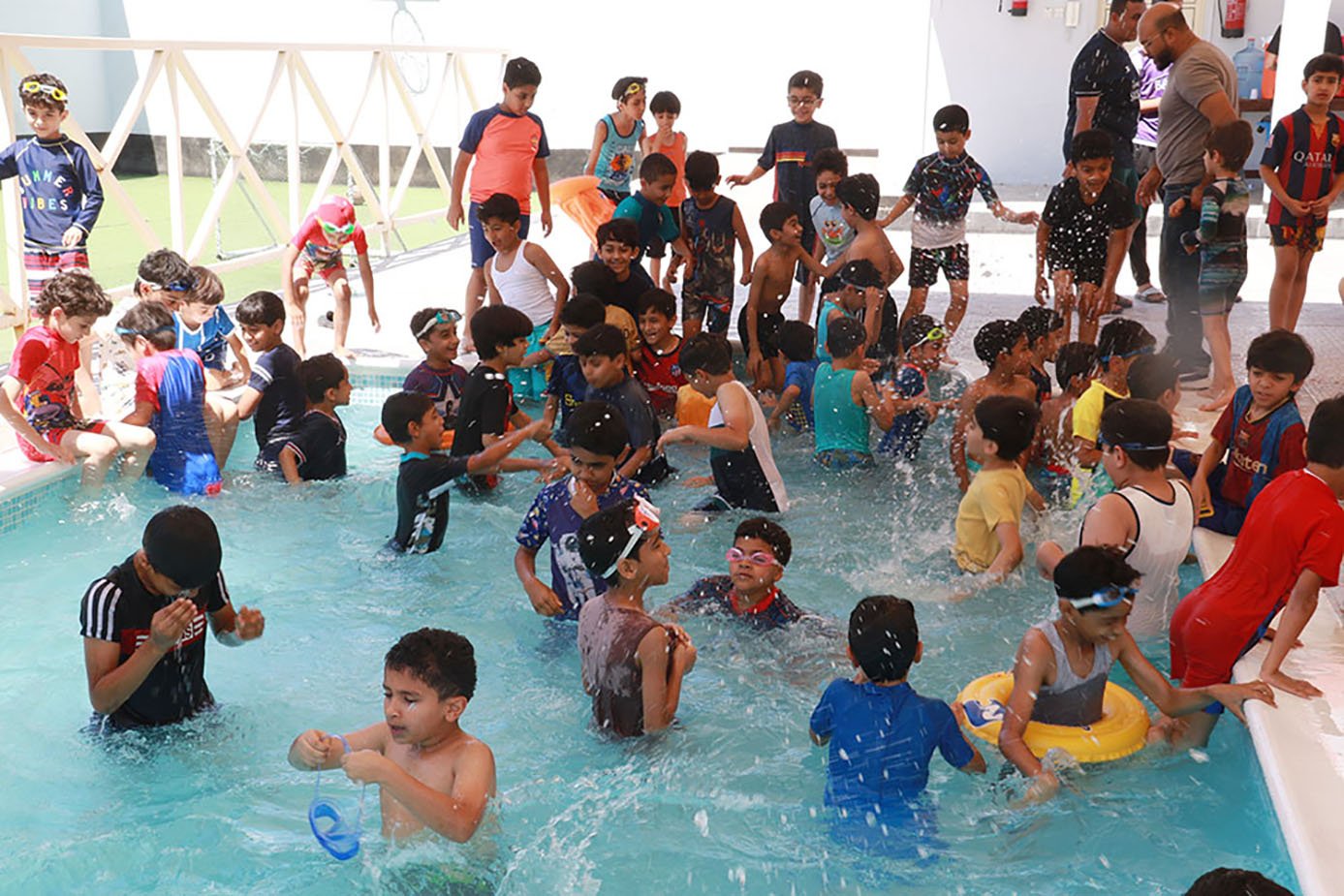 فئة الصِّغار بالذكر الحكيم يمرحون في بُركة سباحة