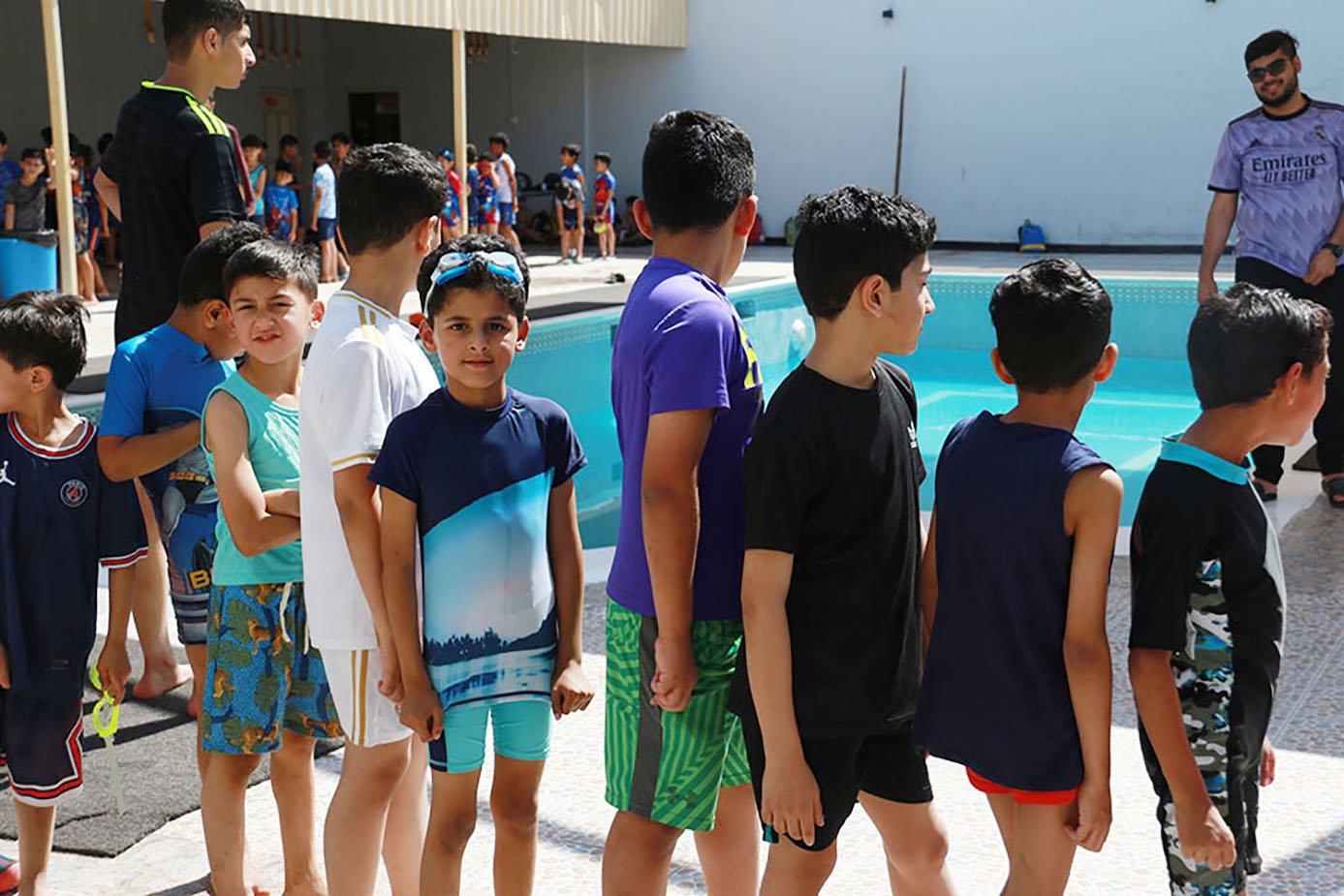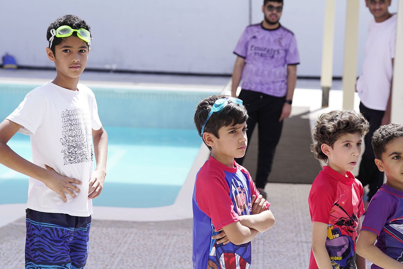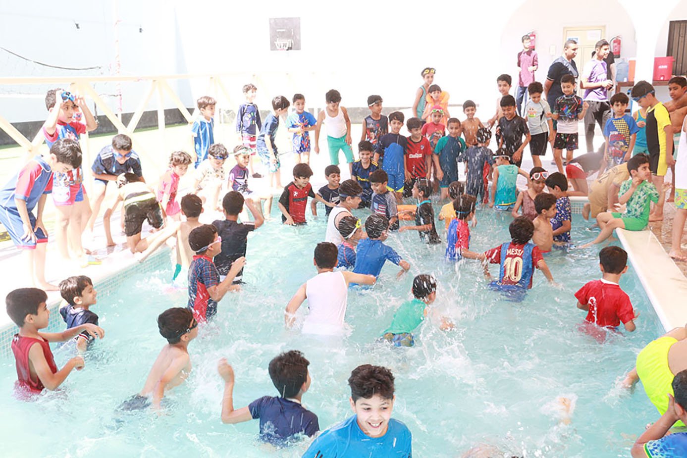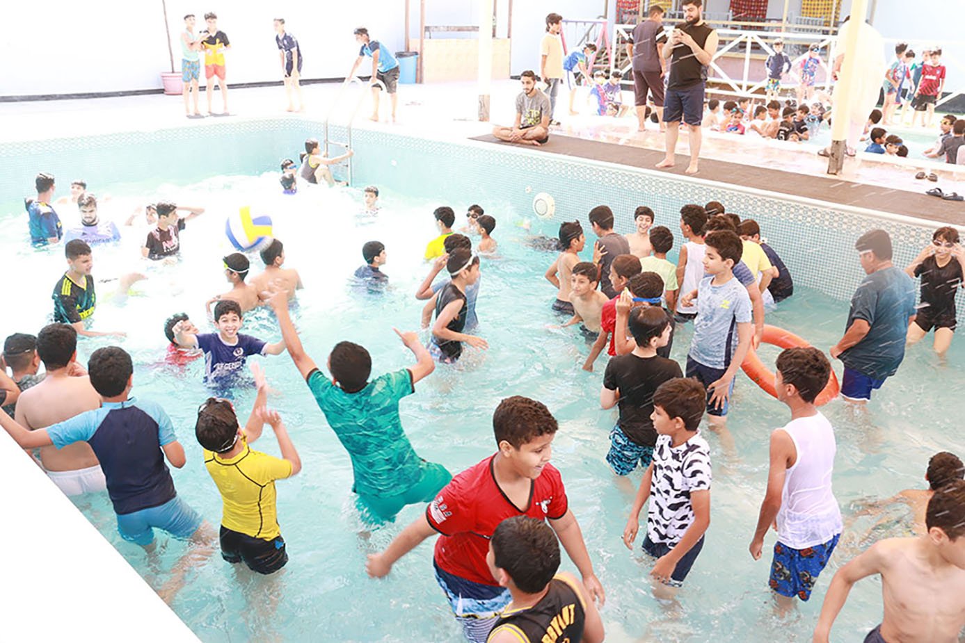 فئة الصِّغار بالذكر الحكيم يمرحون في بُركة سباحة