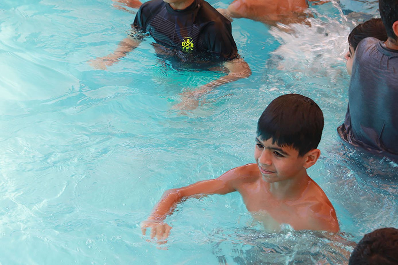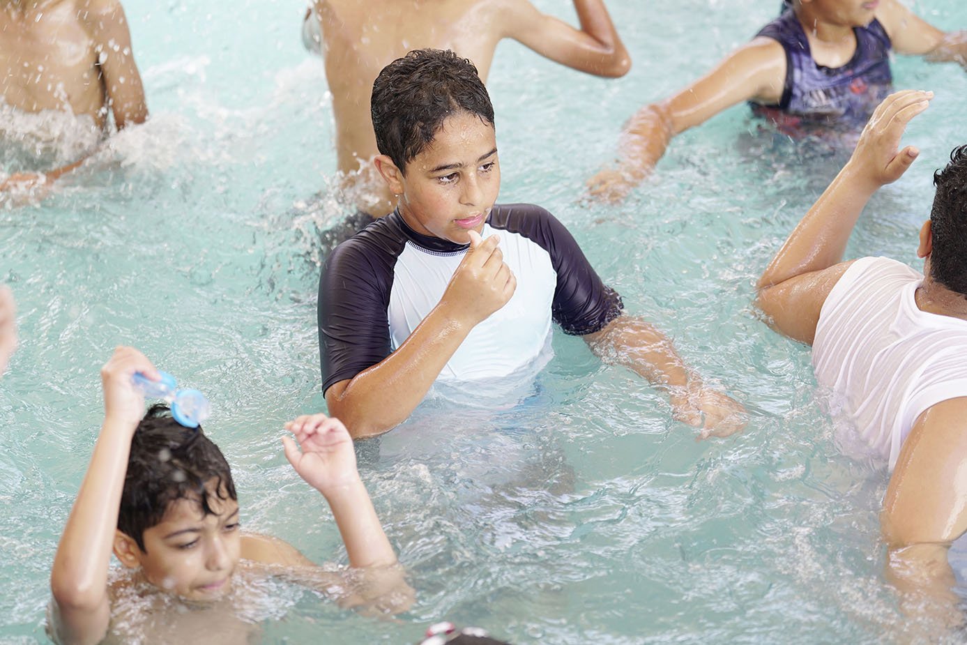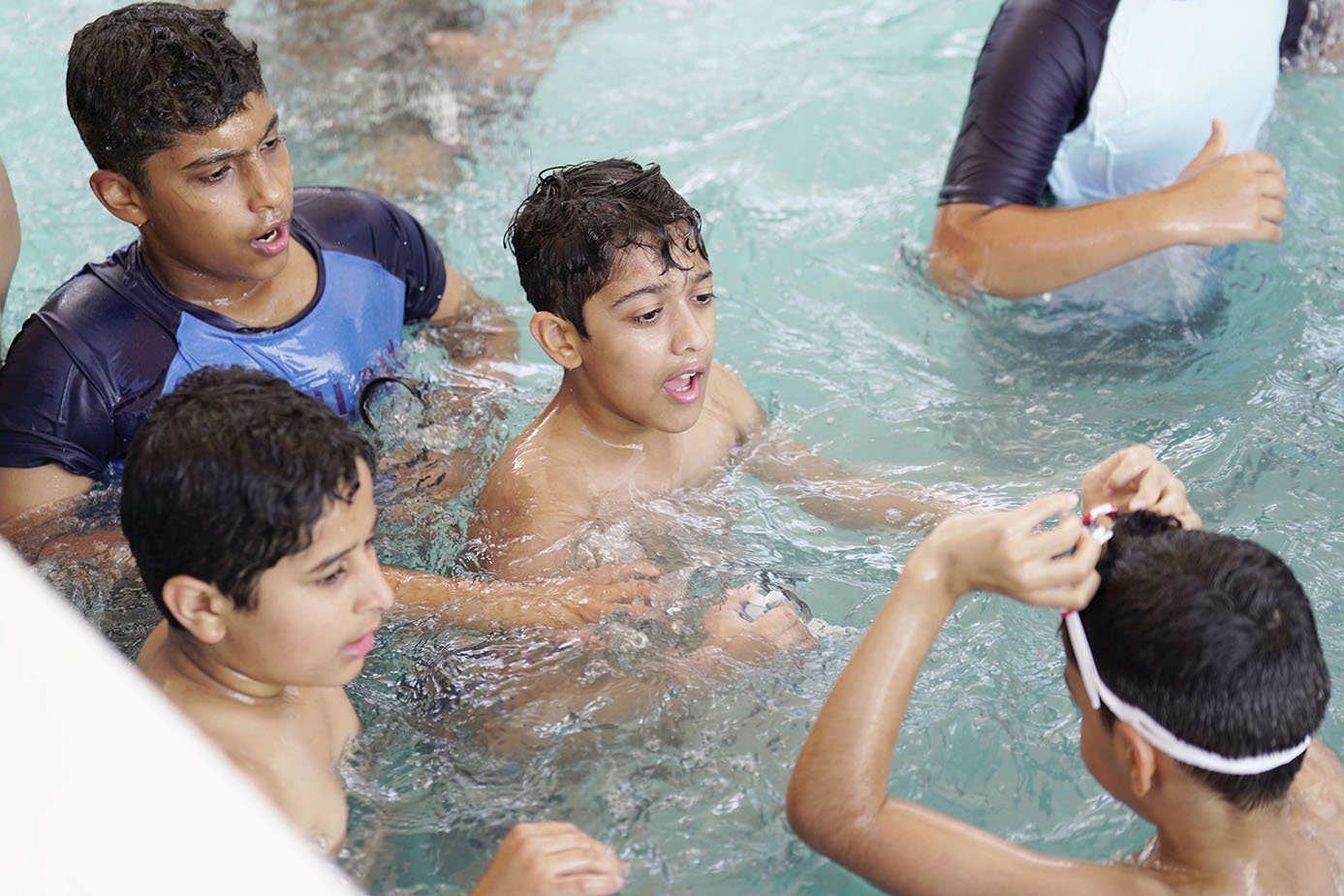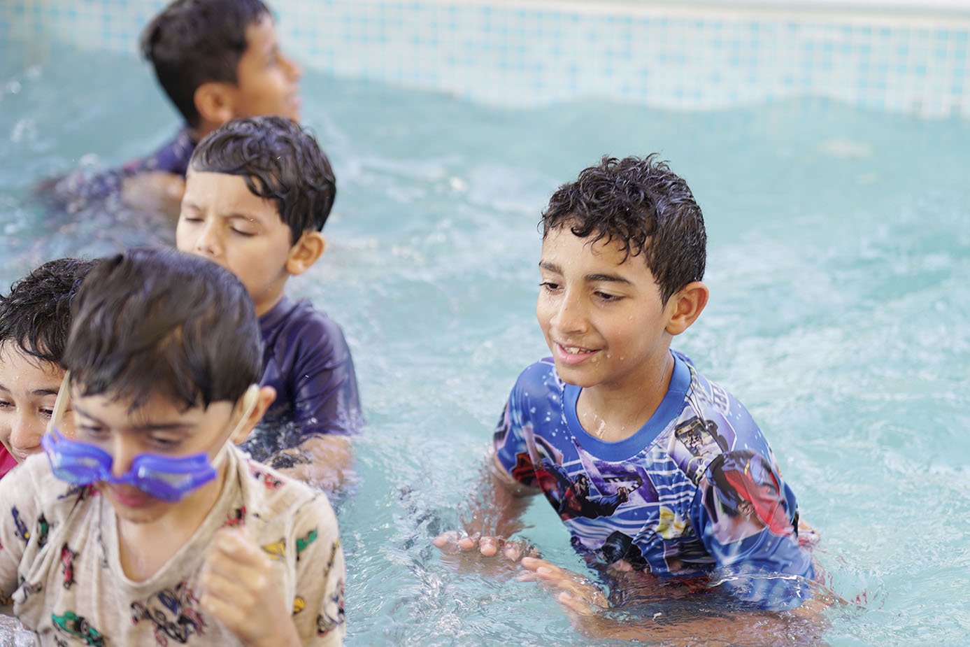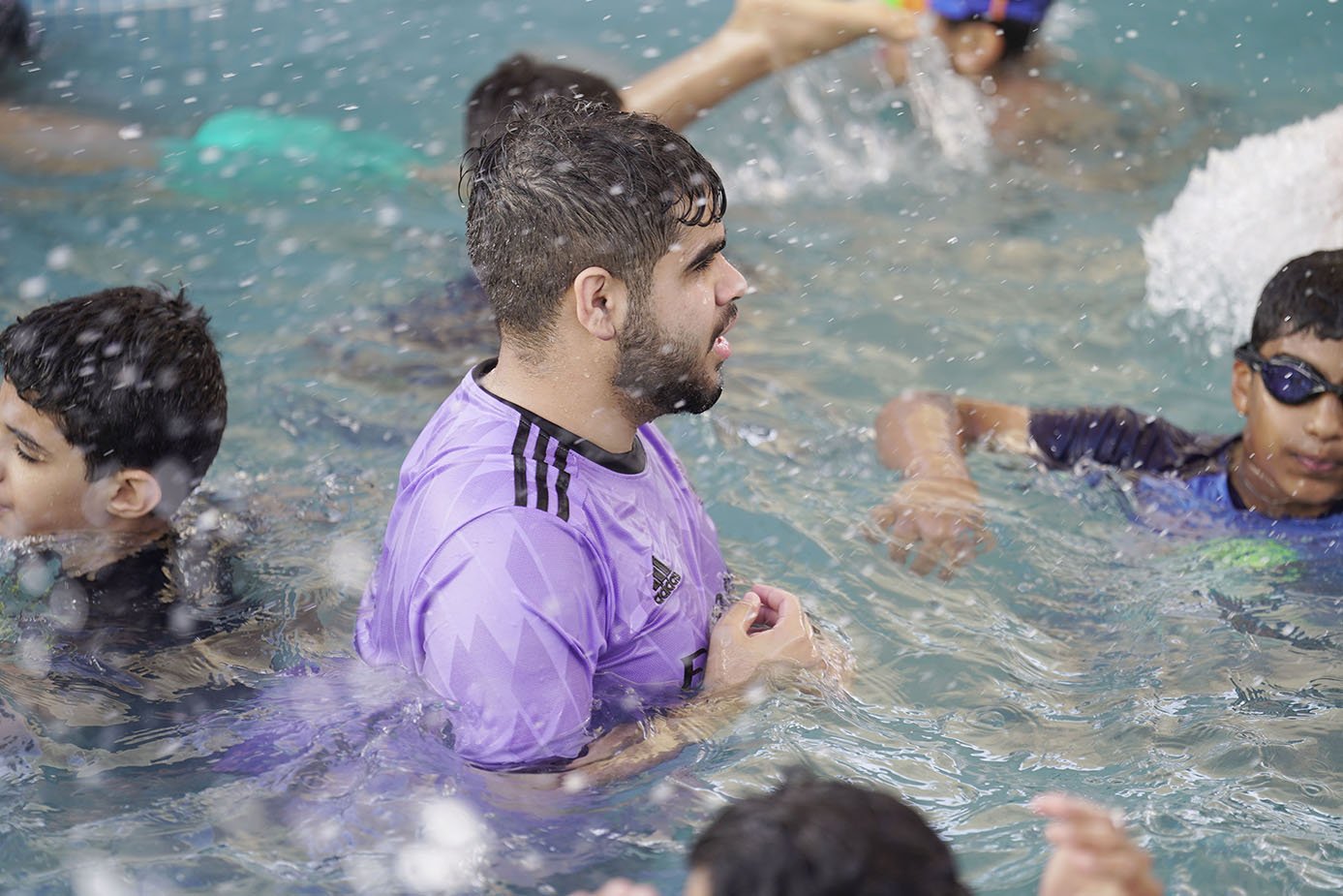فئة الصِّغار بالذكر الحكيم يمرحون في بُركة سباحة