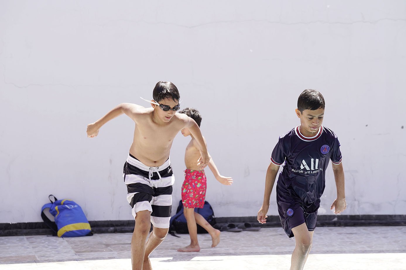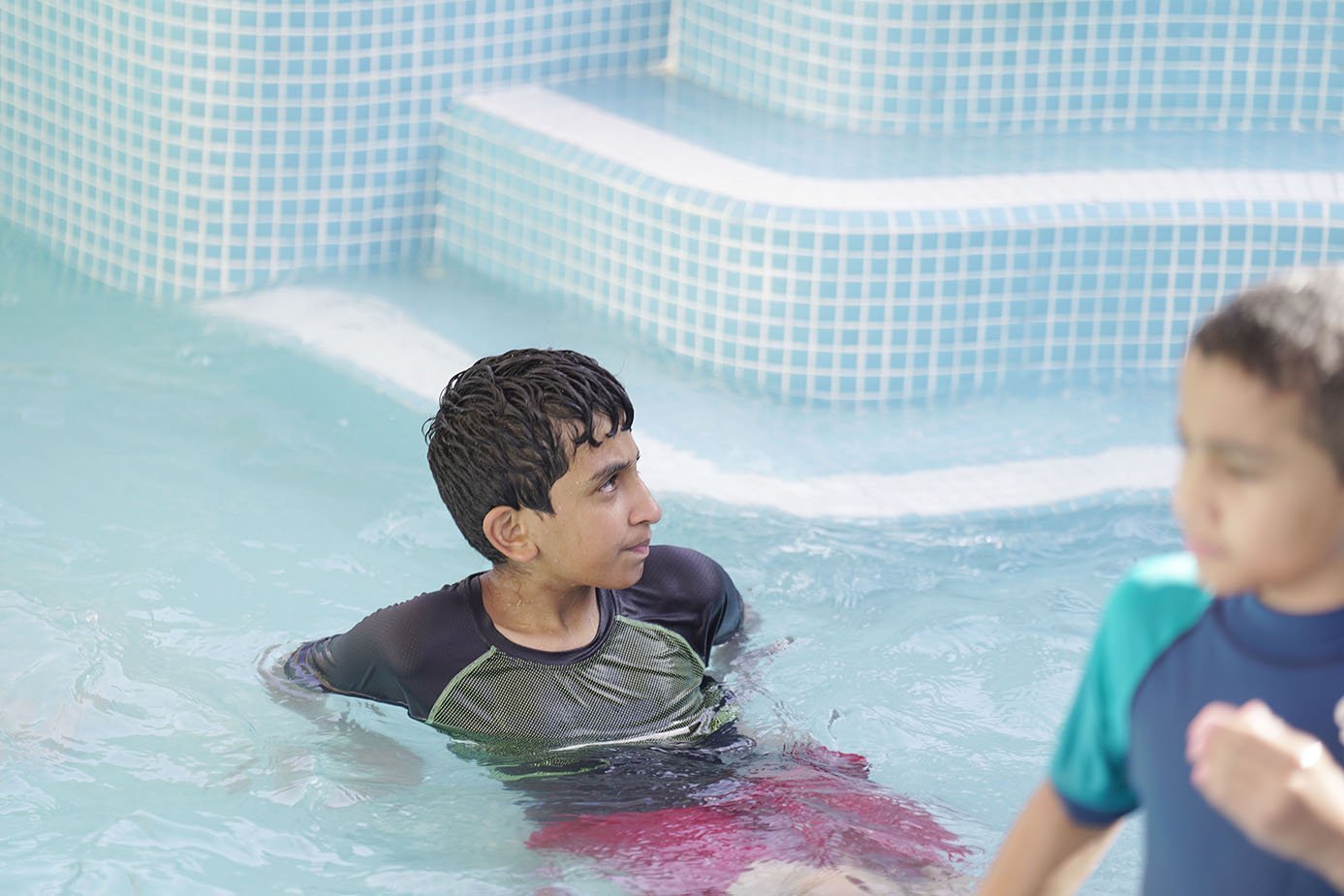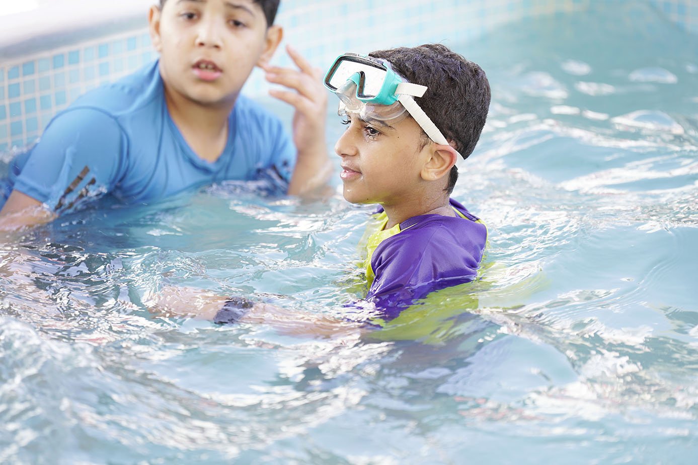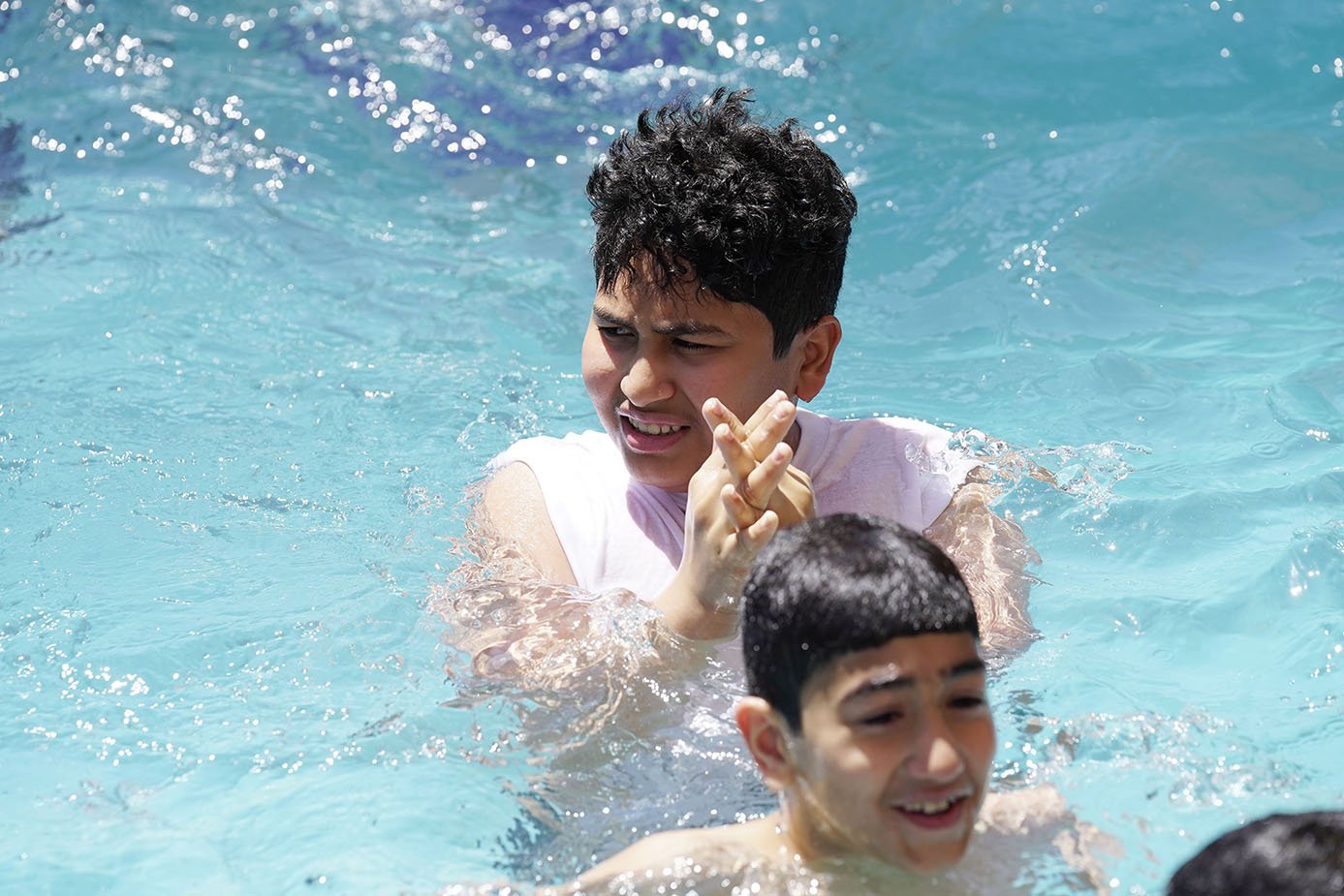 فئة الصِّغار بالذكر الحكيم يمرحون في بُركة سباحة