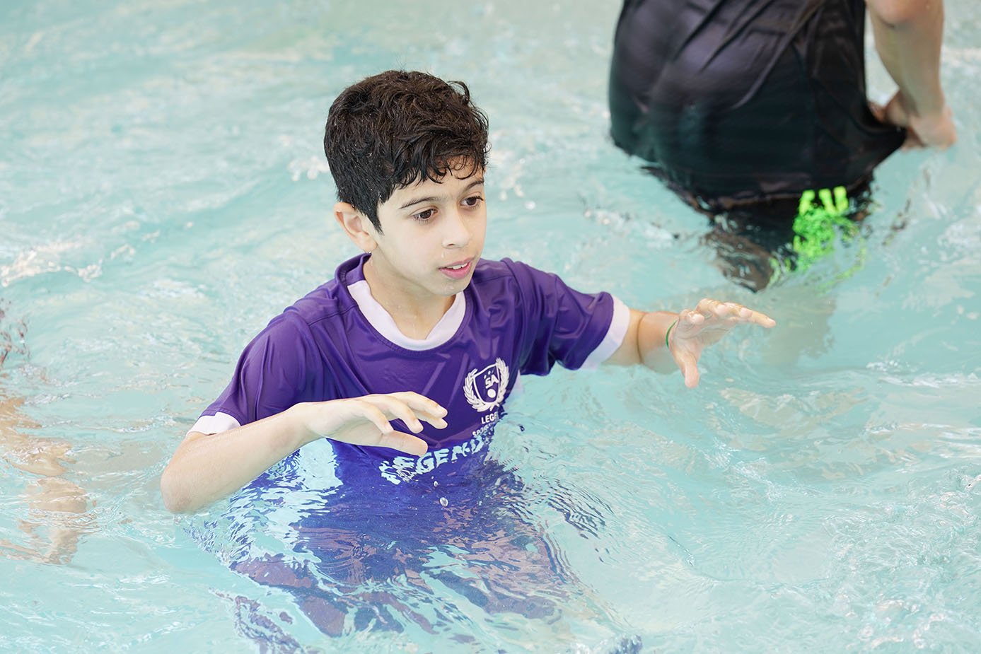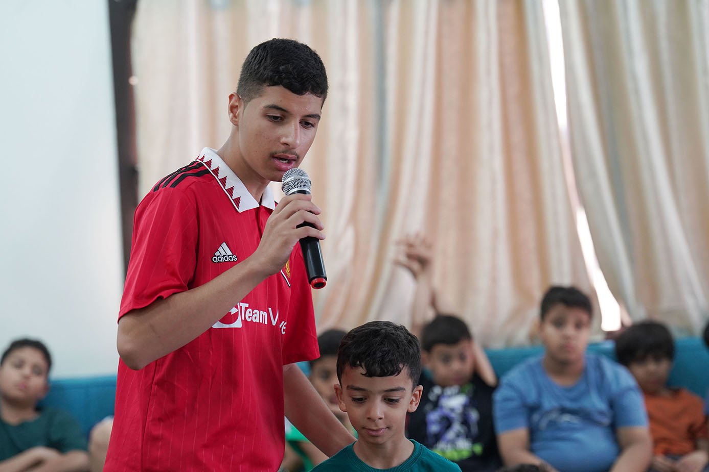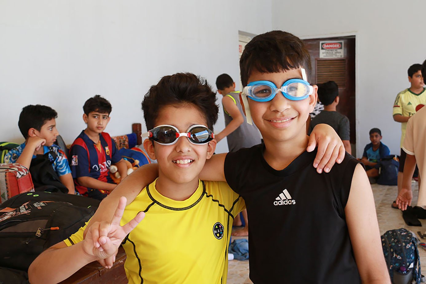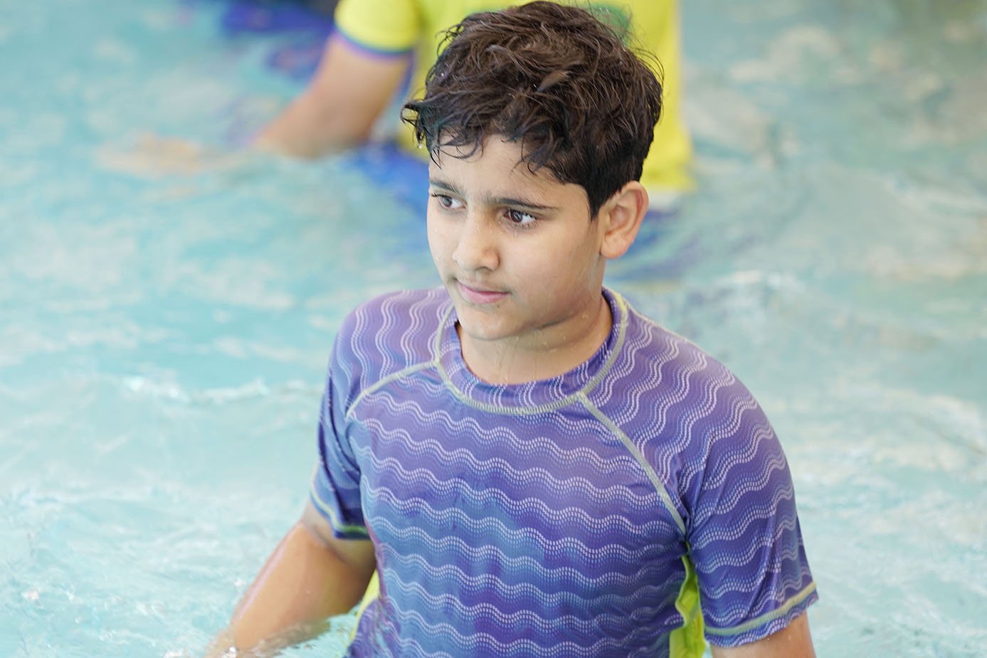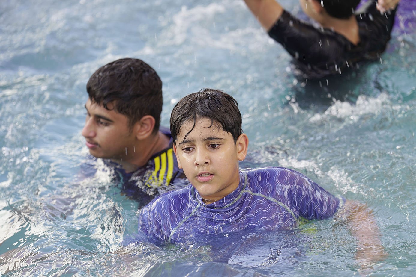 فئة الصِّغار بالذكر الحكيم يمرحون في بُركة سباحة